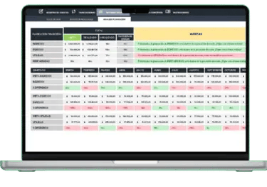 Compara metas vs resultados y genera alertas para evaluar precisión fianceira.