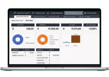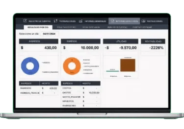 Muestra tus ingresos, gastos y rentabilidad del día comparados con tu meta.