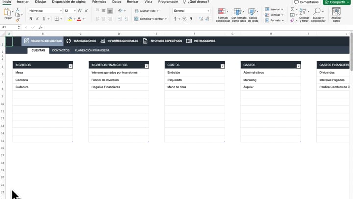 Configura tus categorías de ingresos, costoa y gastos para estructurar toda la información financeira.