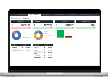 Obtén reportes claros de utilidad, ingresos y egresos con dashboards visuales.