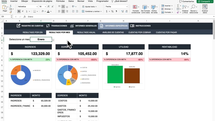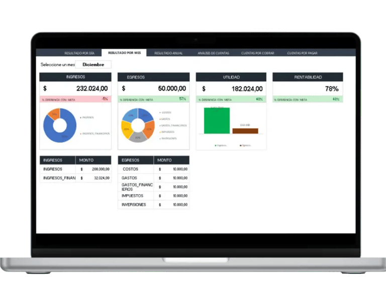 Es una plantilla financiera exclusiva y poderosa que te guía para comprender tus números con claridad total, desde ingresos y egresos hasta utilidad, con gráficos, reportes automáticos y dashboards visuales, diseñada para tomar decisiones inteligentes sin complicaciones.